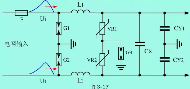 G1、G2的击穿电压可选1000Vp~3000Vp,VR的压敏电压一般取工频电压最大值的1.7倍。