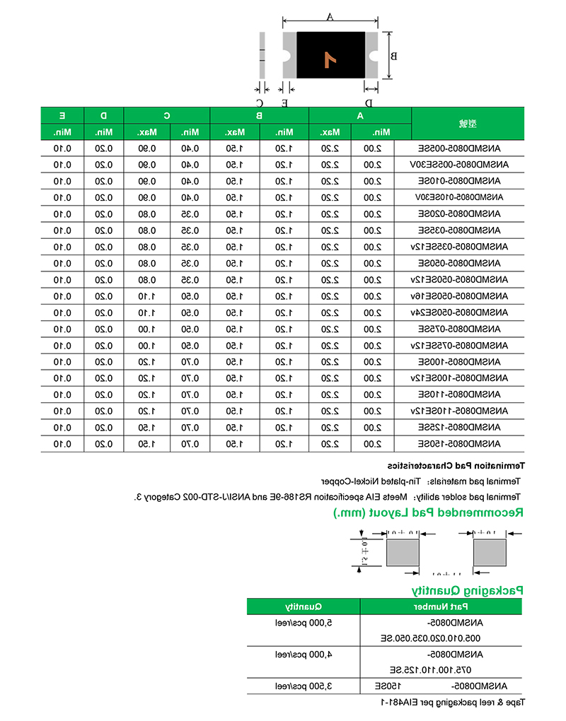 封装尺寸:0.08*0.05英寸/2.0*1.2毫米