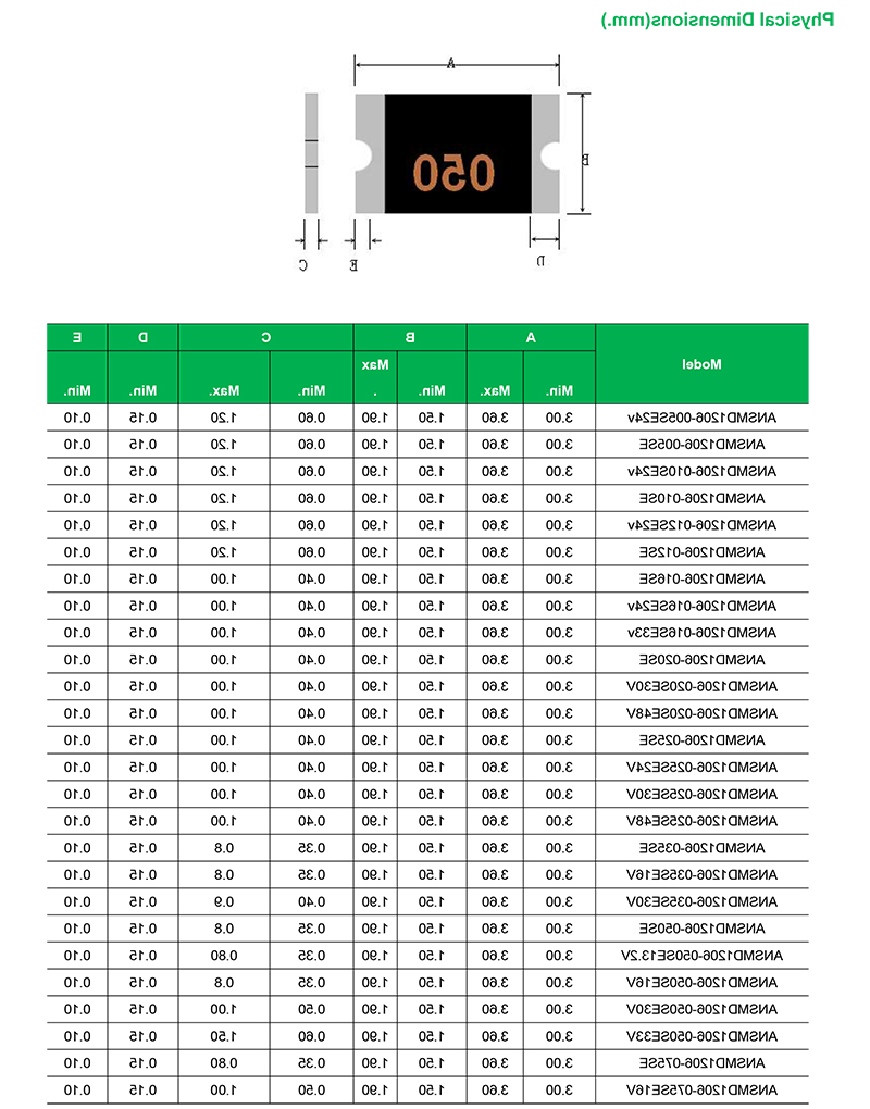 封装尺寸:0.12*0.06英寸/3.2*1.6毫米